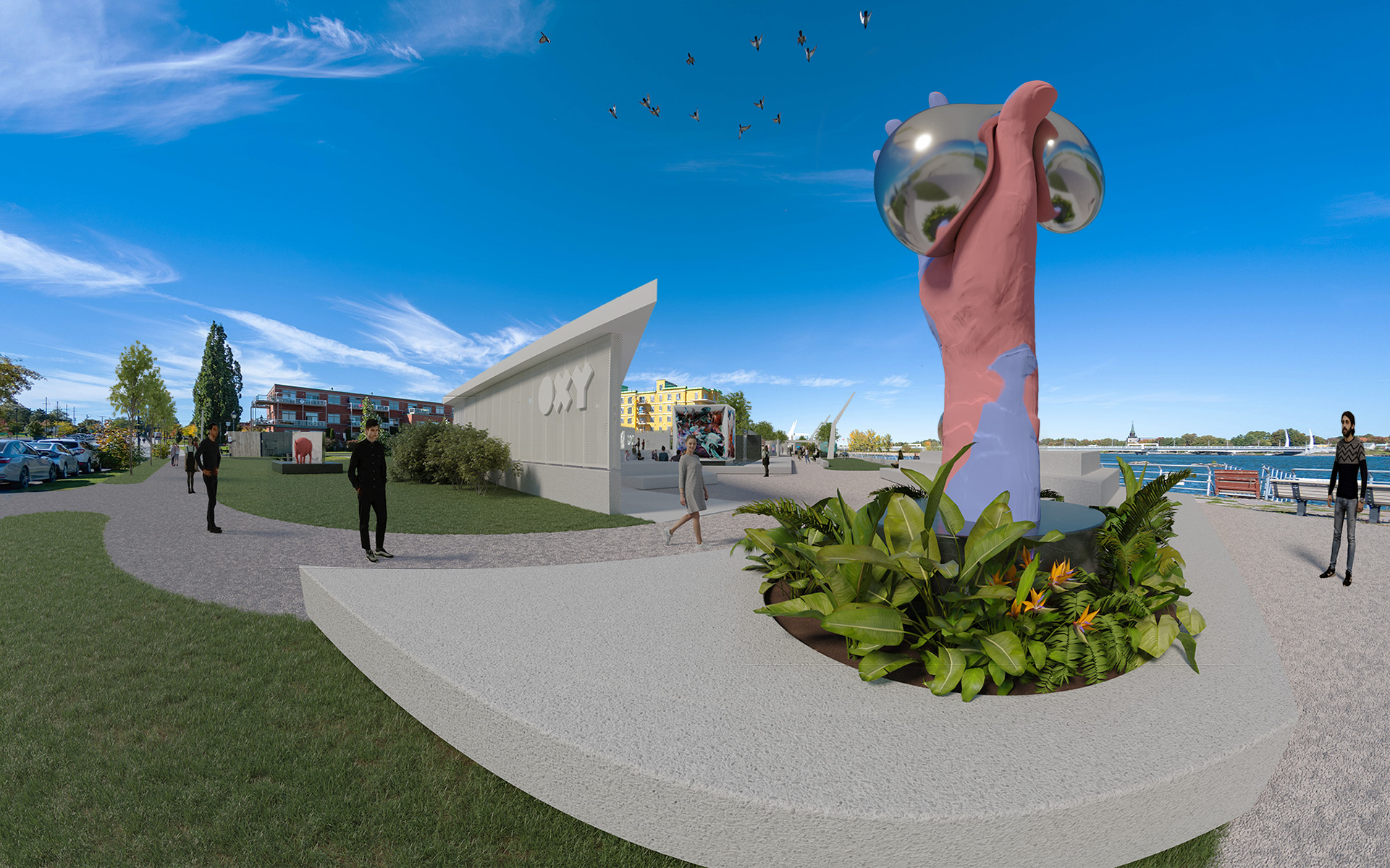 Au cœur de Saint-Jean-sur-Richelieu, sur les rives de la magnifique rivière Richelieu et entre le centre-ville et la marina, la galerie OXY SJSR est l’évolution naturelle du concept d’exposition d’art en plein air lancé par la Galerie Blanc du Village. Cet espace urbain novateur a pour mission principale de présenter des œuvres d’artistes de renommée internationale en rendant l’art accessible 24 heures sur 24, de jour comme de nuit.